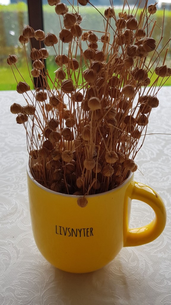 Kubeczek mieści w sobie wiązkę lnu